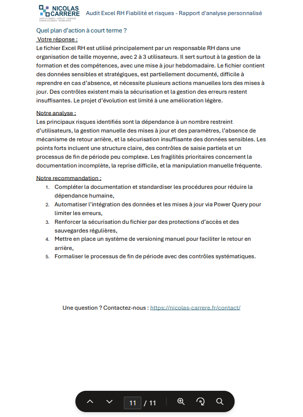 Audit de fichier Excel RH — Diagnostic + Plan d’action (en ligne)