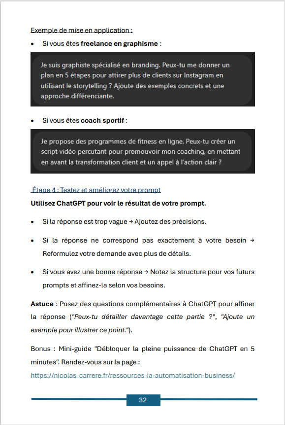 Des prompts optimisés, modèles et checklists prêts à l’emploi pour passer directement à l’action.